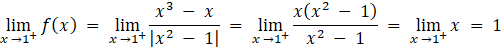 Punkty, które mogą spełniać warunki zadania, to jedynie x = -1 lub x = 1. Zatem w tych punktach należy sprawdzić granice jednostronne funkcji.