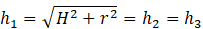 Zauważamy, że przyprostokątnymi każdego z utworzonych w ten sposób trójkątów są: wysokość bryły 𝐻 oraz promień okręgu wpisanego 𝑟. Z twierdzenia Pitagorasa mamy więc, że: