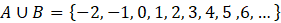 W podpunkcie a) została wyznaczona suma. Dopełnieniem sumy zbiorów A i B jest zbiór, który zawiera elementy należące do przestrzeni (liczby całkowite), ale nie do tej sumy.