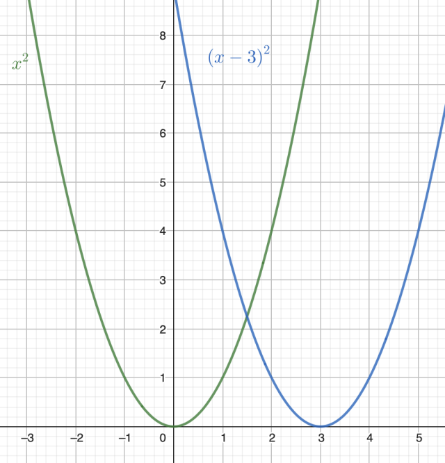 Zauważ, że wykres funkcji g jest przesunięciem wykresu funkcji f o 3 jednostki w prawo