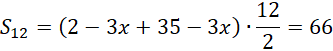Zapisz pierwszy wyraz ciągu i jego różnicę. Wyznacz liczbę wyrazów tego ciągu, korzystając z wyrazu ogólnego ciągu. Teraz oblicz x ze wzoru na sumę n wyrazów ciągu arytmetycznego.