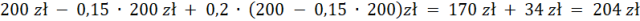 Obniżamy cenę o 15%, a następnie tą obniżoną cenę podwyższamy o 20%: