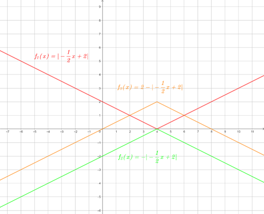 , która znajduje się pod osią x, a resztę wykresu funkcji pozostawiamy niezmienioną i otrzymujemy wykres funkcji