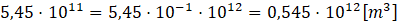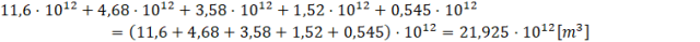 W pierwszym kroku zadania musisz obliczyć łączną objętość wszystkich jezior. Zauważ, że większość objętości jezior jest zapisana przy użyciu 1012, jednak objętość Jeziora Górnego i Jeziora Eire są zapisane za pomocą innej potęgi 10. Aby dodać wszystkie objętości, muszą one być zapisane przy pomocy tych samych potęg. Dlatego należy sprowadzić objętości Jeziora Górnego i Eire do takiej samej potęgi jak pozostałe. W tym celu dane potęgi musisz zapisać jako iloczyn 1012 i takiej potęgi 10, że po przemnożeniu dostaniesz z powrotem wyjściowe potęgi. Następnie te drugie potęgi 10 przemnóż przez wartości liczbowe.