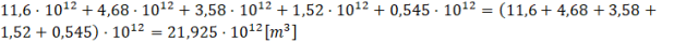 Gdy już wszystkie objętości będą w jednej potędze, możesz je dodać, aby uzyskać łączną objętość wody we wszystkich jeziorach.