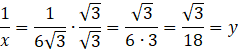 W tym zadaniu musisz najpierw uprościć pierwszą liczbę. Musisz wyłączyć czynniki przed pierwiastki i dodać do siebie otrzymane liczby. W kolejnym kroku musisz podzielić 1 przez jedną z liczb i przekształcić wynik tak, aby był on drugą liczbą. Podczas liczenie będziesz musiał usunąć niewymierność (wymnóż licznik i ułamek przez niewymierność w mianowniku). Ostateczna równość musi wyglądać tak: