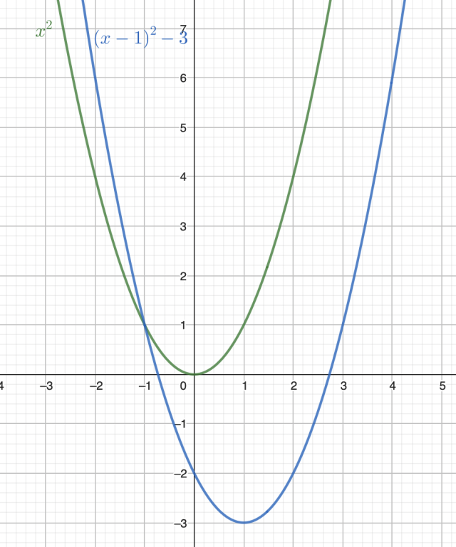 Zauważ, że wykres funkcji g jest przesunięciem wykresu funkcji f o jedną jednostkę w prawo i 3 jednostki w dół.
