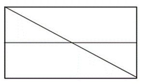 Narysuj dwie proste, z których jedna łączy dwa boki w połowie, a druga jest przekątną prostokąta.