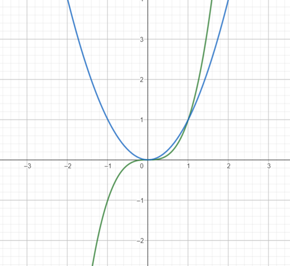 Narysuj osobno wykresy f(x) = x³ i g(x) = x² . Odczytaj z rysunku dla jakich argumentów wartości funkcji f(x) = x³ są większe bądź równe wartościom funkcji g(x) = x².
