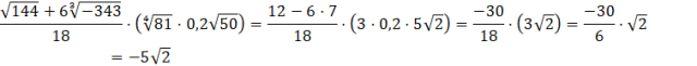 Oblicz wartość każdego z podanych pierwiastków, a następnie wyznacz wartość wyrażenia.