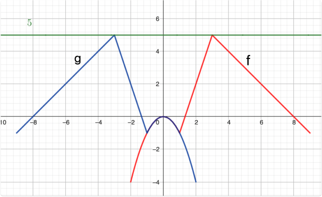 Narysuj wykres funkcji f, a następnie wykres funkcji g poprzez symetryczne odbicie wykresu względem osi OY. Teraz w tym samym układzie współrzędnych narysuj wykres funkcji