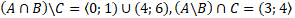 W tym zadaniu należy znaleźć i wyznaczyć zbiory: iloczyn zbiór A i B pomniejszony o zbiór C, oraz iloczyn zbioru C oraz różnicy zbiorów A i B. Zbiory A, B i C zostały podane w zadaniu: