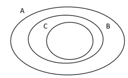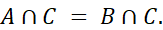 Przecięcie zbiorów A i C daje nam sam zbiór C, tak samo, jak przecięcie zbiorów B i C, Zatem możemy wnioskować, że zbiór C jest wewnątrz obu zbiorów A i B, i jest on najmniejszy.