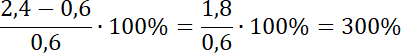 Zauważ, że aby obliczyć o ile liczba x jest większa od liczby y musisz obliczyć iloraz ich różnicy przez wartość liczby y i uzyskany wynik pomnożyć przez 100%.