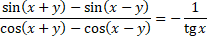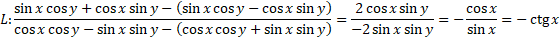Skorzystaj ze wzorów na sinus sumy i różnicy kątów i rozpisz licznik. Następnie zrób to samo z mianownikiem, stosując wzory na sumę i różnicę kątów w cosinusie. Zauważ, że po skróceniu siny otrzymasz wzór cotangensa. Z zasad trygonometrii wiemy, że