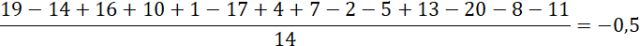 Wyznacz medianę, dominantę i średnią arytmetyczną zestawu liczb 19, –14, 16, 10, 1, –17, 4, 7, –2, –5, 13, –20, –8, –11.