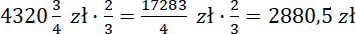 Na początek wypisz potrzebne dane: zarobki męża, część zarobków męża, jakie zarabia pani Ewa oraz część zarobków, jaką stanowią podatki i składki. Oblicz zarobki pani Ewy, mnożąc zarobki jej męża przez podaną w treści część. Następnie zapisz, jaka część zarobków zostaje po odjęciu podatków i składek. Mnóż zarobki brutto przez ten ułamek. Na koniec dodaj do siebie zarobki netto (po odliczeniu podatku i składek) pani Ewy i jej męża.