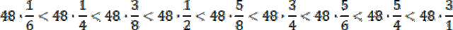 W tym zadaniu musisz wykonać mnożenie liczby 48 przez podane ułamki, ułożyć je rosnąco i podać swoje spostrzeżenia.