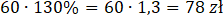 Podwyżka o 30% oznacza, że cena towaru po podwyżce będzie stanowić 130% ceny przed podwyżką