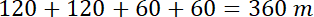 Oblicz obwód działki, uwzględniając przerwę na bramę wjazdową.