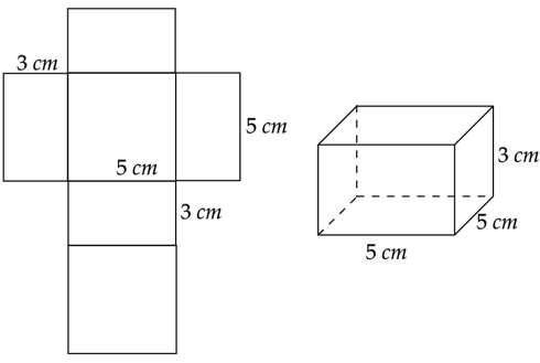 Oblicz sumę długości krawędzi prostopadłościanu. Zauważ, że ma on 8 krawędzi długości 5 cm i 4 krawędzie długości 3 cm.