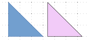Wytnij dwa takie same trójkąty prostokątne równoramienne oraz napisz jakie wielokąty można z nich ułożyć i który z tych wielokątów ma oś symetrii?