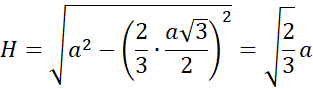 Następnie korzystając z twierdzenia Pitagorasa, oblicz wysokość czworościanu, będącą przyprostokątną trójkąta prostokątnego o drugiej przyprostokątnej równej