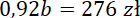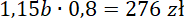 1,15b – cena sukienki po podwyżce o 15%, tę cenę następnie obniżono o 20% i uzyskano cenę 276 zł: