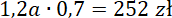 1,2a – cena sukienki po podwyżce o 20%, tę cenę następnie obniżono o 30% i uzyskano cenę 252 zł: