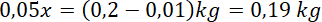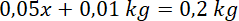 20 dag cukru musisz zmieszać z wodą, aby otrzymać 5-procentowy roztwór cukru. Oznacz ilość wody jako x.