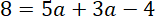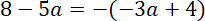 Aby punkty były symetryczne względem początku układów współrzędnych ich współrzędne x oraz y muszą być liczbami przeciwnymi. Dane są punkty: M = (8 – 5a, 9), N = (-3a + 4, -9)
