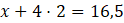 Na pierwszym rysunku widzimy, że cała figura składa się z jednego krzyża i 4 pozostałych jednakowych figur. Pole tej figury wynosi 16,5. Możemy więc zapisać, że