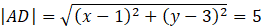 Wyznacz współrzędne punkt D, dla którego czworokąt o wierzchołkach A(1, 3), B(-2, -1), C(2, 2) oraz D jest rombem.