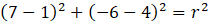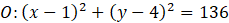 Podaj równanie opisujące okrąg, o środku S(1, 4), wiedząc, że największa odległość punktu na okręgu od prostej o równaniu 3x – 5y – 51 = 0 wynosi