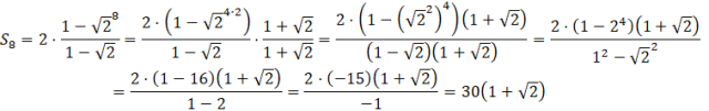 Aby obliczyć tę sumę pamiętaj o podstawowych własnościach potęg i pierwiastków. Pamiętaj, że gdy w mianowniku jest wyrażenie z pierwiastkiem, musisz pomnożyć licznik i mianownik przez to samo wyrażenie tylko, że ze zmienionym znakiem między liczbą a pierwiastkiem. Robi się to w celu, aby w mianowniku uzyskać wzór skróconego mnożenia, który wyeliminuje pierwiastek z mianownika.