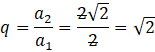 Ponieważ, każdy kolejny wyraz ciągu geometrycznego powstaje przez pomnożenie wyrazu poprzedniego przez iloraz tego ciągu, to dzieląc wyraz następny przez poprzedni otrzymasz iloraz. Wystarczy więc wyznaczyć następny wyraz a1, czyli a2, a następnie podzielić a2 przez a1. Wyraz a2 to po prostu drugi składnik tej sumy, czyli