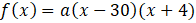Aby wyznaczyć szukany wzór funkcji, wykorzystaj informacje, które już masz. Po pierwsze, jednym z miejsc zerowych tej funkcji jest 30, co łatwo widać z wykresu (miejsce zerowe to punkt przecięcia się z osią OX). Kolejnym charakterystycznym punktem tego wykresu jest przecięcie się z osią OY. Dla odległości 0 m, woda znajduje się na wysokości 3 metrów. Obie te własności możesz zapisać jako:
