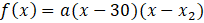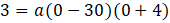 Z wykresu można odczytać, że p = 13, że jednym z miejsc zerowych jest 30 oraz że w punkcie przecięcia się z osią OY parabola osiąga wartość 3.