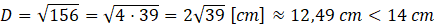 Ołówek w tym pudełku może leżeć wzdłuż przekątnej tego graniastosłupa. Więc musisz obliczyć długość najdłuższej przekątnej i określić, czy jest ona mniejsza czy większa od 14 cm.