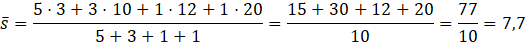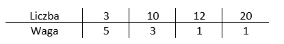 W tym zadaniu musisz wyznaczyć średnią ważoną podanego w tabeli zestawu liczb i ich wag.