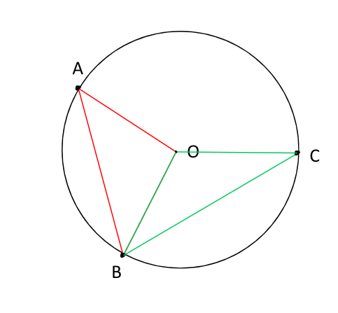 Dany jest okrąg o środku O. Punkty A, B i C dzielą go na trzy równe części. Dowiedź, iż trójkąty oznaczone jako ABO oraz BOC są przystające.