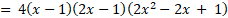 Rozłóż wielomian w na czynnik wyłączając wspólne czynniki przed nawias, podstaw pod x wartości 2x, x + 1, 2x - 1, i rozłóż na czynniki otrzymane wyrażenia.