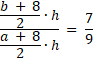 Wiedząc, że odcinek |EF| = 8, uzależnij b od a. Skorzystaj z faktu, że pola mają się do siebie jak 7 : 9, aby dojść do równości