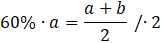 60% z liczby a to średnia arytmetyczna z a i b. Musisz wyznaczyć z tego równania zmienną b. Po wyznaczeniu zmiennej, musisz podzielić średnią arytmetyczną przez nią i pomnożyć wynik przez 100%.