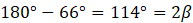 Przyjmij oznaczenia jak na rysunku i oblicz miarę kąta