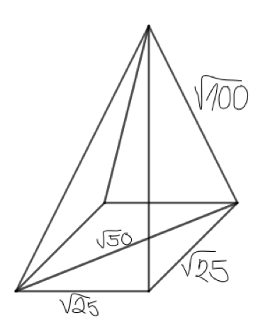Dany jest ostrosłup prawidłowy czworokątny, którego wierzchołek podstawy jest oddalony od pozostałych wierzchołków bryły o odpowiednio