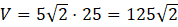 W tym zadaniu musisz obliczyć długości przekątnej graniastosłupa prawidłowego czworokątnego i jego objętość, jeśli przekątna jest nachylona pod kątem 45˚ do przekątnej podstawy, a krawędź podstawy ma długość 5.