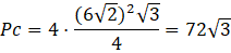 Powstała bryła jest czworościanem foremny. Pole powierzchni całkowitej czworościanu foremnego to suma pól czterech trójkątów równobocznych. Objętość czworościanu foremnego wyznacza się ze wzoru
