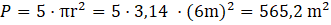 W tym zadaniu musisz obliczyć, czy obszar pozostawiony dla widzów stanowi więcej niż połowę boiska, jeśli na boisku o wymiarach przedstawionych na rysunku zorganizowano pokazy pięciu szkolnych grup akrobatycznych, każdej grupie wyznaczono obszar do występów w kształcie koła o promieniu 6 m.
