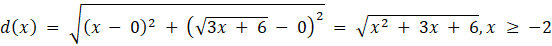 Odległość punktu P od początku układu współrzędnych, czyli funkcje d(x), można określić jako: